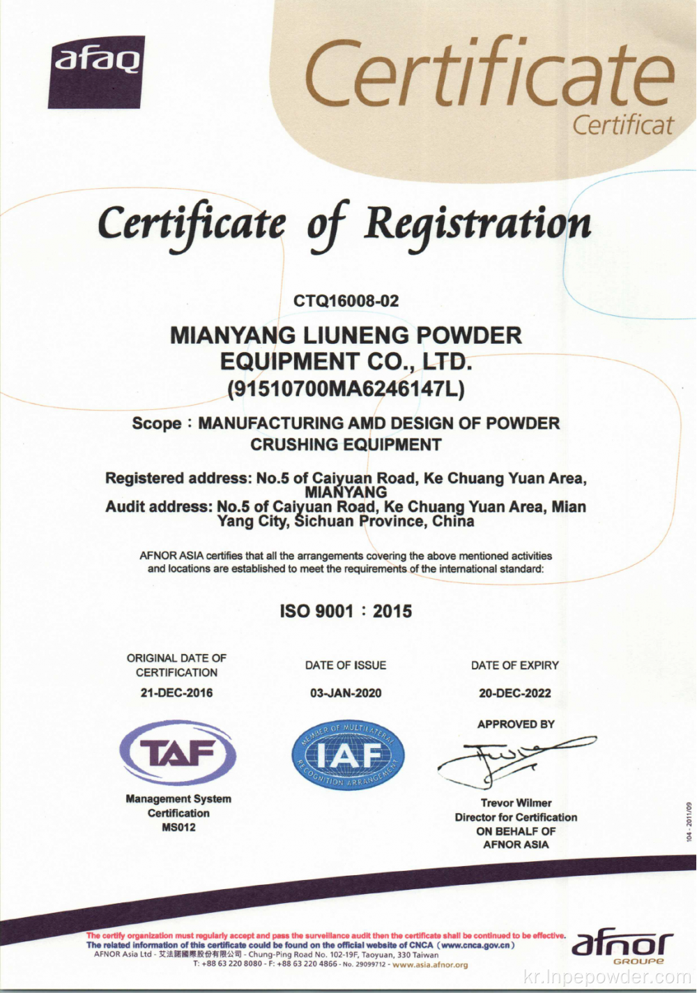 LNPE는 초 미세 연삭, 정밀 분류, 입자 형태 제어에 널리 사용되는 발명 및 실용 특허에 대한 많은 특허를 보유하고 있습니다 .