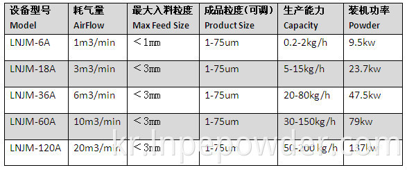 LNJM 시리즈 제약 GMP 및 FDA 인증을받은 전용 제트 밀.
